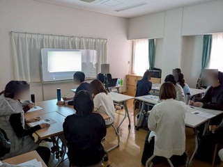神戸教育短期大学の中塚志摩先生、Zoomは理学療法士の先生、田中先生にも入ってもらい保護者の学校生活に関する悩みや、子どものことをどのように先生に伝えればよいかを話し合いました。