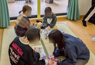 小学校中・高学年のグループは難しい遊びにもチャレンジ!ピンポン玉をミニ担架(新聞紙と大きめのビニール袋で作ったもの)の上にのせてお姉さんやお友達と協力して運びました。「どうしたら落ちずに運べるかな?」とよく考えて取り組んでいました。