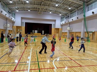 子どもプログラムはアリーナで楽しい運動遊びをたくさん行いました。
