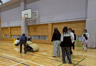 学生さんとおもちゃで遊んだ後、キャンパス内の体育館に移動して遊びました。