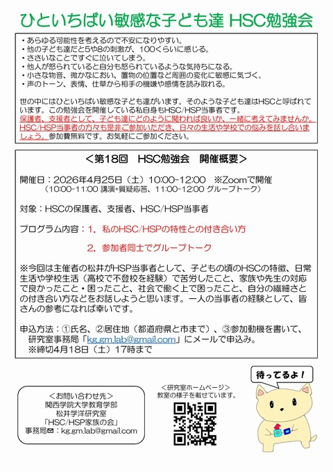 - 2026年4月25日(土)10:00-12:00に第18回HSC勉強会をZoomで開催します。