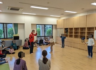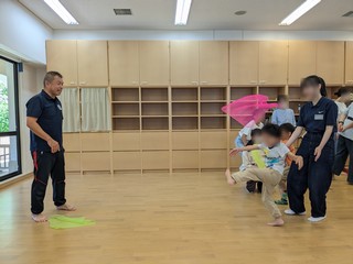 今回、神戸市立東部療育センターひまわり学園保育士の松浦智子先生にお越しいただき全体遊びを担当していただきました。