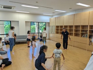 大縄跳びの練習もしましたが、これも縄を回すのではなく、上と下に縄を動かすことから始め、タイミングよく通り抜けることを練習しました。