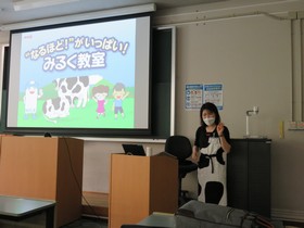 - 授業で株式会社明治さんから講師をお招きし、小学校低学年を対象とした食育セミナーを受けました。 今回は朝食の大切さに着目し、規則正しい食生活を子ども達にわかりやすく伝える方法を学びました。わかりやすい資料の提示と子どもの関心を引き出す授業内容は大変勉強になりました。