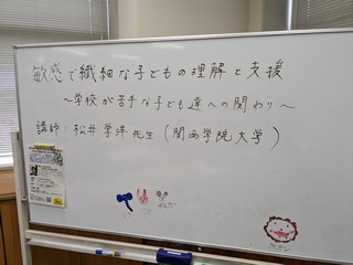 - 泉大津市通級指導教室担当教員研修でHSCへの関わり方について講演させていただきました。先生方におかれましては、熱心にご聴講いただきありがとうござました。私も先生方と一緒に、子どもとご家族を支えていきたいと思います。内容が少しでも皆さんのお役に立てば幸いです。